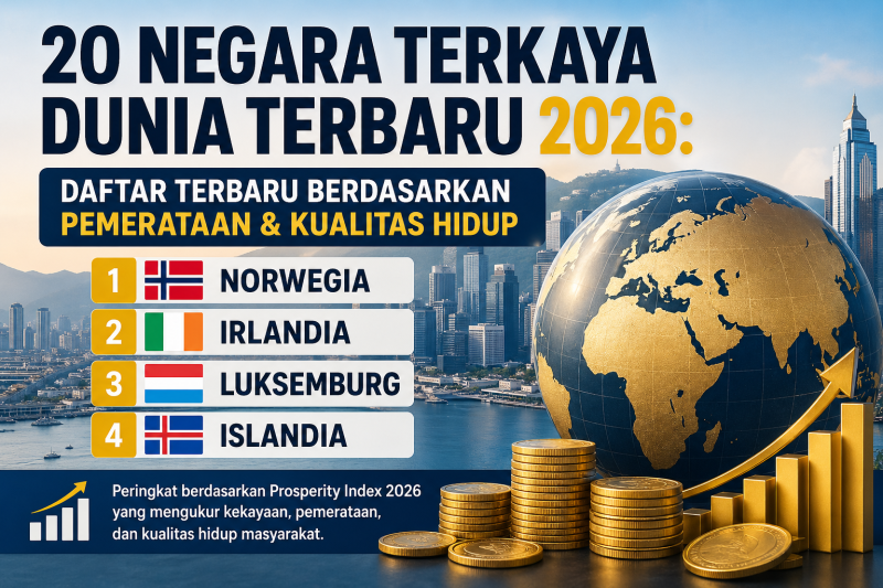 SIGNALBERITA.COM – Peringkat negara terkaya dunia tahun 2026 mengalami perubahan besar. Penilaian tidak lagi hanya berdasarkan Produk Domestik Bruto (PDB), tetapi juga mempertimbangkan distribusi kekayaan, kualitas hidup, dan kesejahteraan masyarakat.