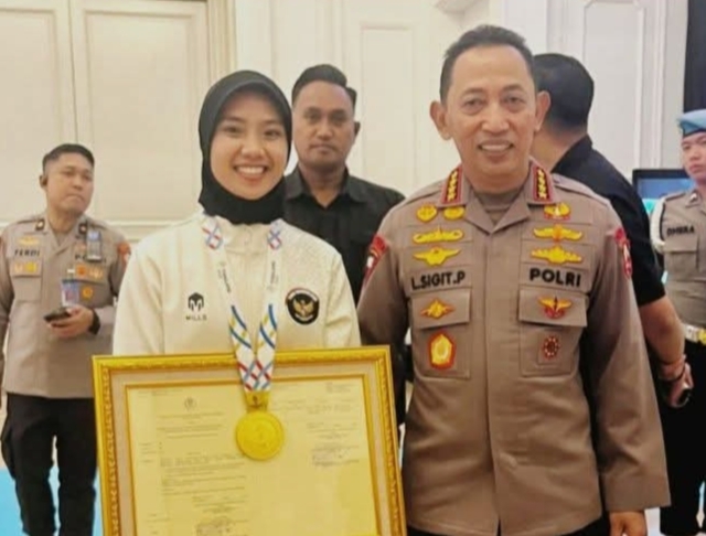 RIAU, SIGNALBERITA.COM — Kapolri Jenderal Polisi Listyo Sigit Prabowo memberikan apresiasi kepada atlet panjat tebing nasional asal Riau, Puja Lestari, atas prestasinya meraih medali emas SEA Games 2025 Thailand. Puja mendapat kesempatan mengikuti rekrutmen Sekolah Inspektur Polisi Sumber Sarjana (SIPSS) Tahun Anggaran 2026.