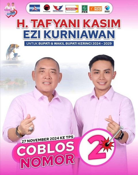 KERINCI, SB – Tren positif pasangan calon Bupati Kerinci dan Wakil Bupati Kerinci, H Tafyani Kasim (HTK) – Ezi Kurniawan yang kian hari kian melejit benar-benar membuat risih segelintir pihak. Upaya untuk menjatuhkan HTK-Ezi pun terus dilakukan.