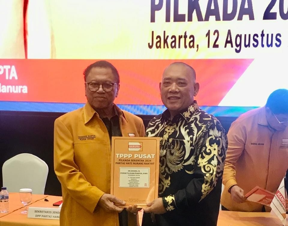 Tafyani Kasim menerima Rekomendasi langsung Dari ketua Umum Partai Hanura, Oesman Sapta Oddang di jakarta.