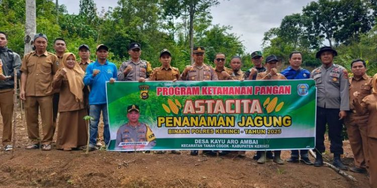 KERINCI, SB – Dalam mendukung Program Pemerintah Pusat melalui Ketahanan Pangan Asta Cita, Pemerintah desa Kayu Aro Ambai bersama Polsek Sitinjau Laut dan Koramil 04 Sitinjau Laut, kecamatan Tanah Cogok, melaksanakan Penanaman Jagung, pada Selasa (30/9/2025).