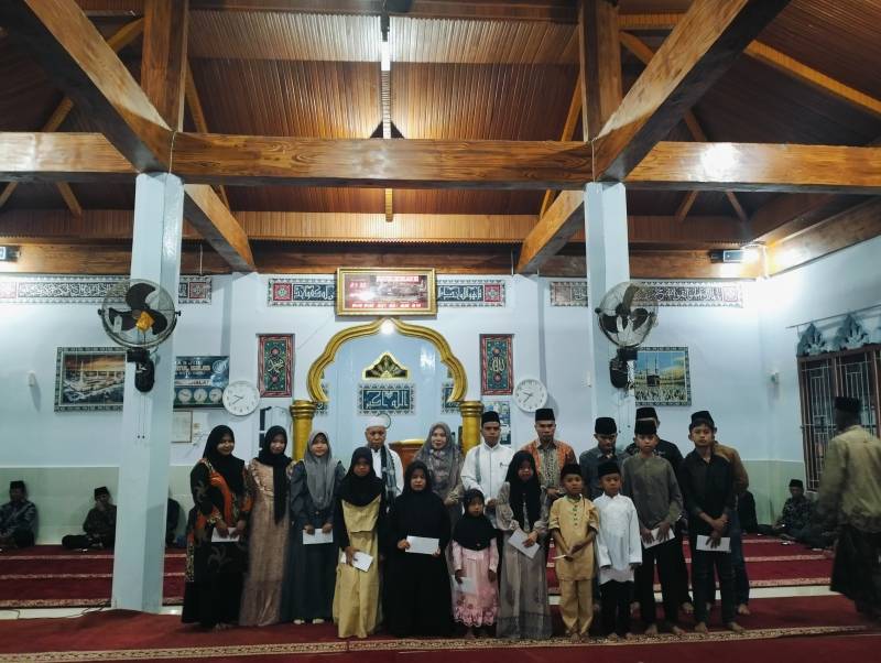 Pemberian santunan anak yatim-piatu dilakukan pada acara Isra Miraj di Masjid Jamiatul ikhlas, Desa Koto Baru, pada hari Jumat (17/1/2025) malam.
