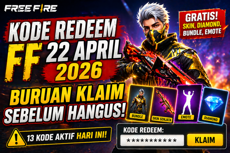 Kode redeem Free Fire 22 April 2026 menjadi kesempatan emas bagi pemain untuk mendapatkan item premium secara gratis. Dengan total 13 kode aktif, peluang meraih hadiah semakin besar.***