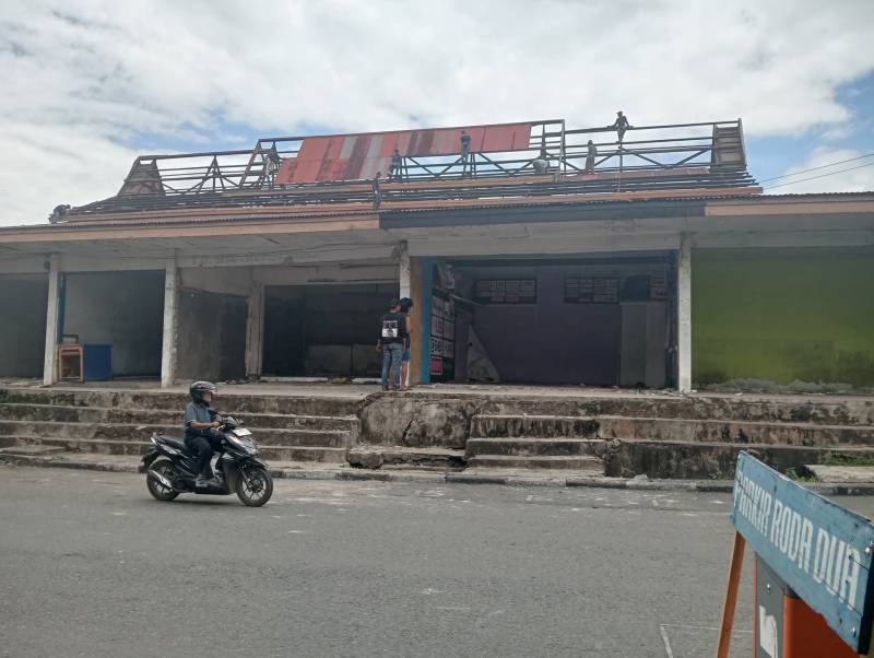 Pantauan di lapangan terlihat pekerja mulai membongkar atap seng Pasar Beringin Jaya, yang masih bisa di gunakan, sebelum di lakukan. Pembongkaran oleh Eskavator nanti.