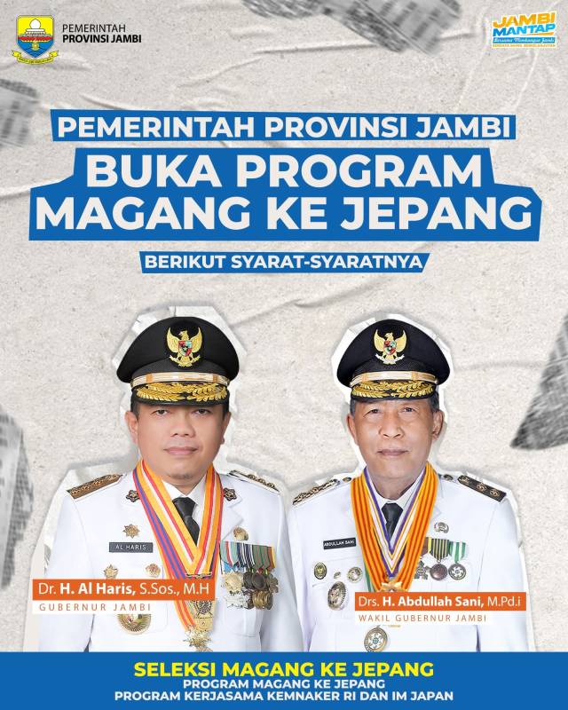 JAMBI, SB – Kabar gembira bagi anak muda yang mencarikan kerja. Pada tahun 2025 ini Pemerintah Provinsi Jambi melalui Dinas Tenaga Kerja dan Transmigrasi kembali membuka program magang ke Jepang bagi anak muda Jambi.