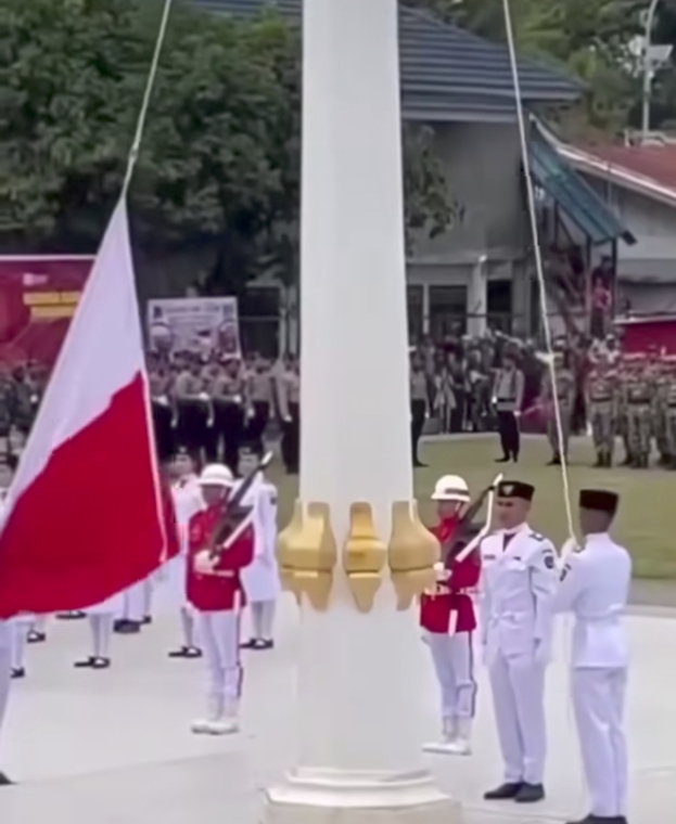 SIGNALBERITA.COM – Upacara HUT RI ke-80 di kabupaten Mamasa, Sulawesi Barat, mengalami insiden tak terduga, Bendera yang di kibarkan anggota Paskibraka terbalik, pada Minggu (17/8/2025) di lapangan Kondosapata.