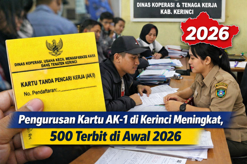 KERINCI, SIGNALBERITA.COM – Pengurusan Kartu Pencari Kerja (AK-1) atau yang dikenal sebagai kartu kuning di Kabupaten Kerinci terus mengalami peningkatan. Tingginya angka permohonan terlihat dari banyaknya berkas yang masuk ke Dinas Koperasi dan Tenaga Kerja setempat dalam beberapa waktu terakhir.