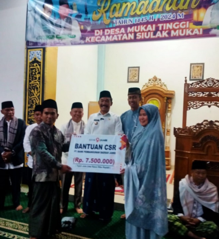 Pada kesempatan tersebut PJ. Bupati Kerinci menyerahkan bantuan dana CSR dari bank Jambi sebanyak Rp. 7500.000 untuk masjid Nurul Iman.(Lan)