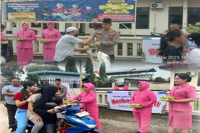 Puluhan paket takjil dibagikan kepada masyarakat yang melintas sebagai bentuk kepedulian Polsek Jambi Timur selama bulan suci Ramadhan.