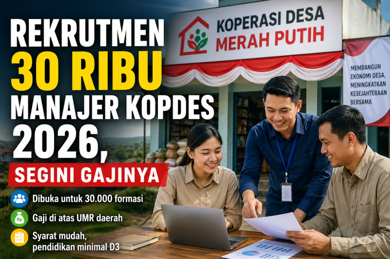 Rekrutmen 30.000 manajer Kopdes Merah Putih menjadi salah satu program besar pemerintah di 2026. Dengan gaji kompetitif dan peran strategis, peluang ini terbuka luas bagi masyarakat, terutama kalangan muda.