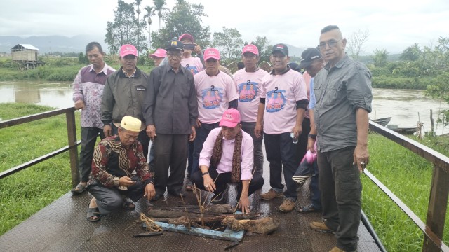 Sebagai bukti keseriusan H Tafyani Kasim usai acara dibawah rintik-rintik hujan HTK langsung turun melihat dan meninjau kondisi jembatan yang sudah rusak dan nyaris ambruk tersebut.