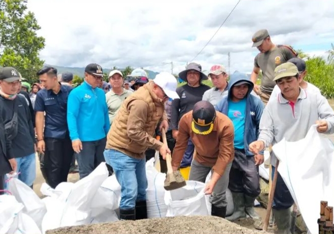 Wako Alfin saat turun tangan membantu warga buat tanggul