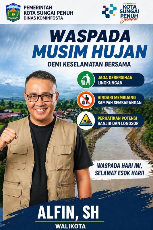 Dalam poster resmi yang beredar, Wali Kota Sungai Penuh, Alfin, SH, mengajak seluruh warga untuk bersama-sama menjaga keselamatan dengan memperhatikan kondisi lingkungan sekitar.